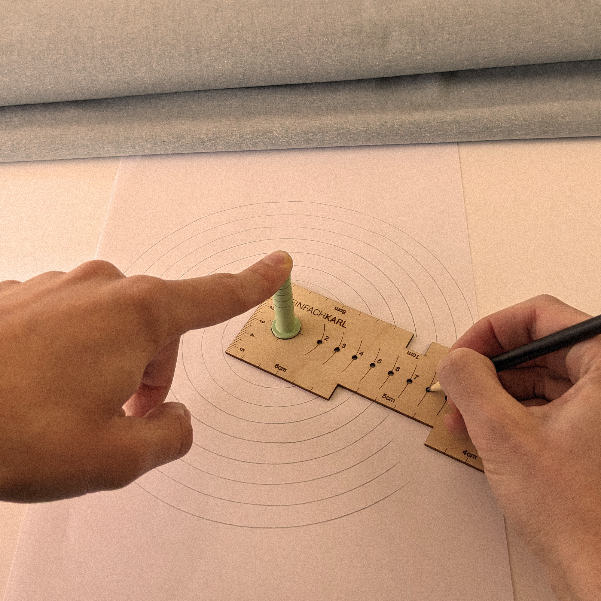 Unsere magnetischen Zuschneidehilfen unterstützen dich beim Zuschnitt deiner Schnittmuster, denn dank ihnen musst du nie wieder Nahtzugaben per Hand anzeichnen. Befestige Karl oder Karlchen einfach magnetisch an deine Schere oder deinen Rollschneider, stelle deinen gewünschten Abstand individuell ein und schneide deine Stoffe zu.